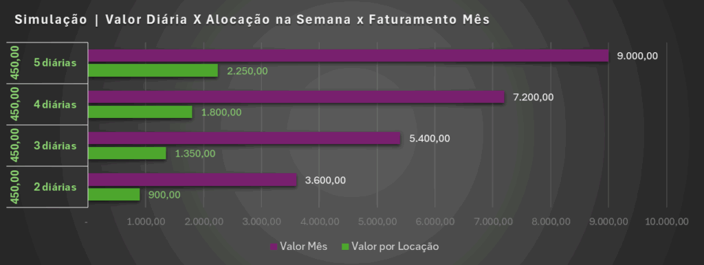Abaixo uma simulação de quanto você pode gerar de renda na semana e no mês: