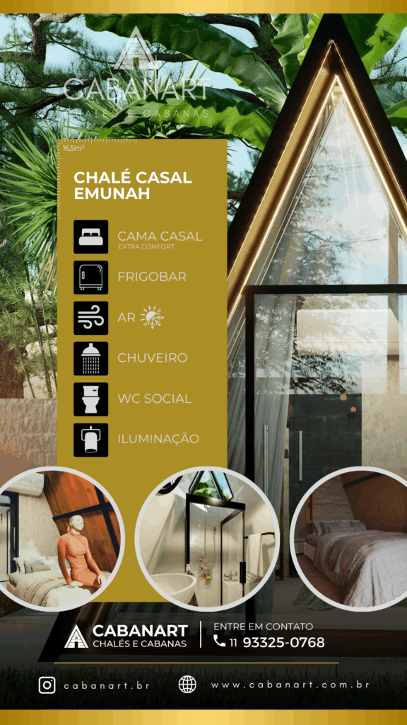 Somos fabricantes de chalés e cabanas modernas e aconchegantes, projetadas para locação, hospedagem e turismo. Transforme seu espaço em um ambiente exclusivo, confortável e rentável.Nosso objetivo é fornecer unidades prontas para uso, que oferecem uma experiência única, permitindo aos proprietários ou hóspedes desfrutarem da tranquilidade do campo ou da praia com estilo, qualidade e bem-estar.