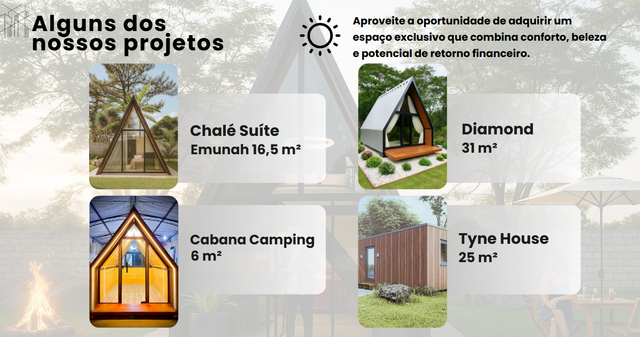 🏡✨ Invista em um negócio rentável e encantador! Nossos chalés e cabanas são a oportunidade perfeita para quem quer lucrar com o mercado de aluguel por temporada.